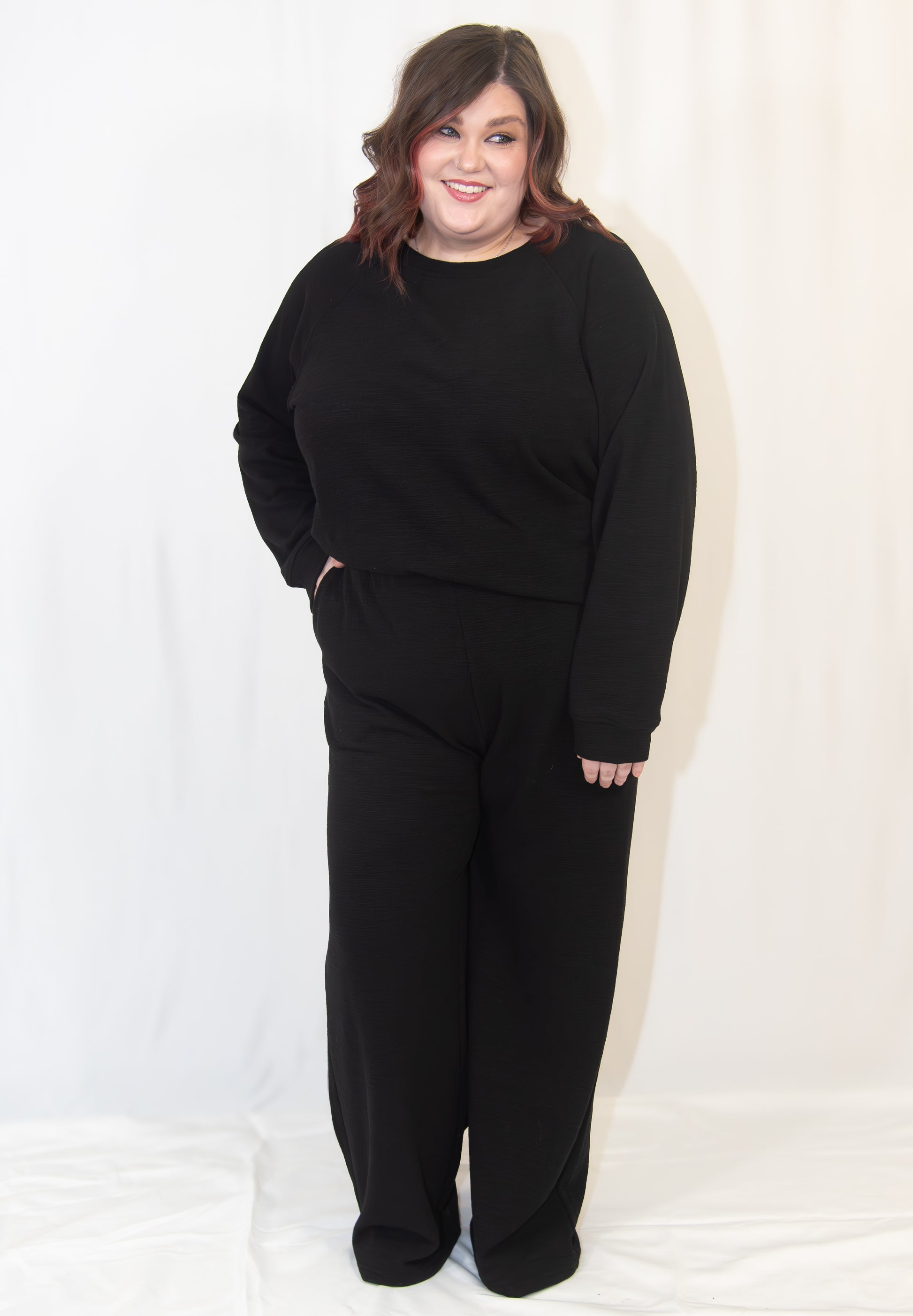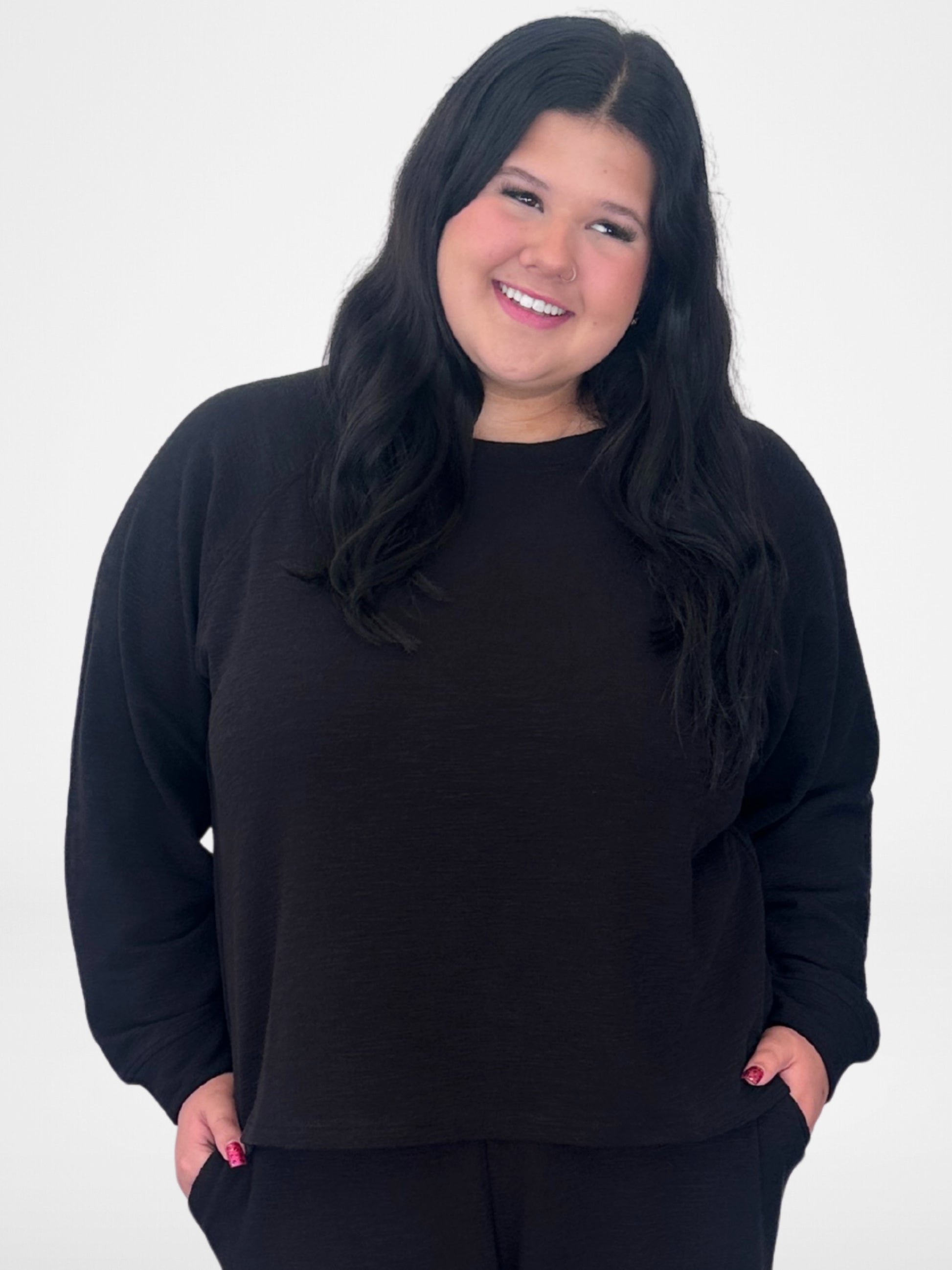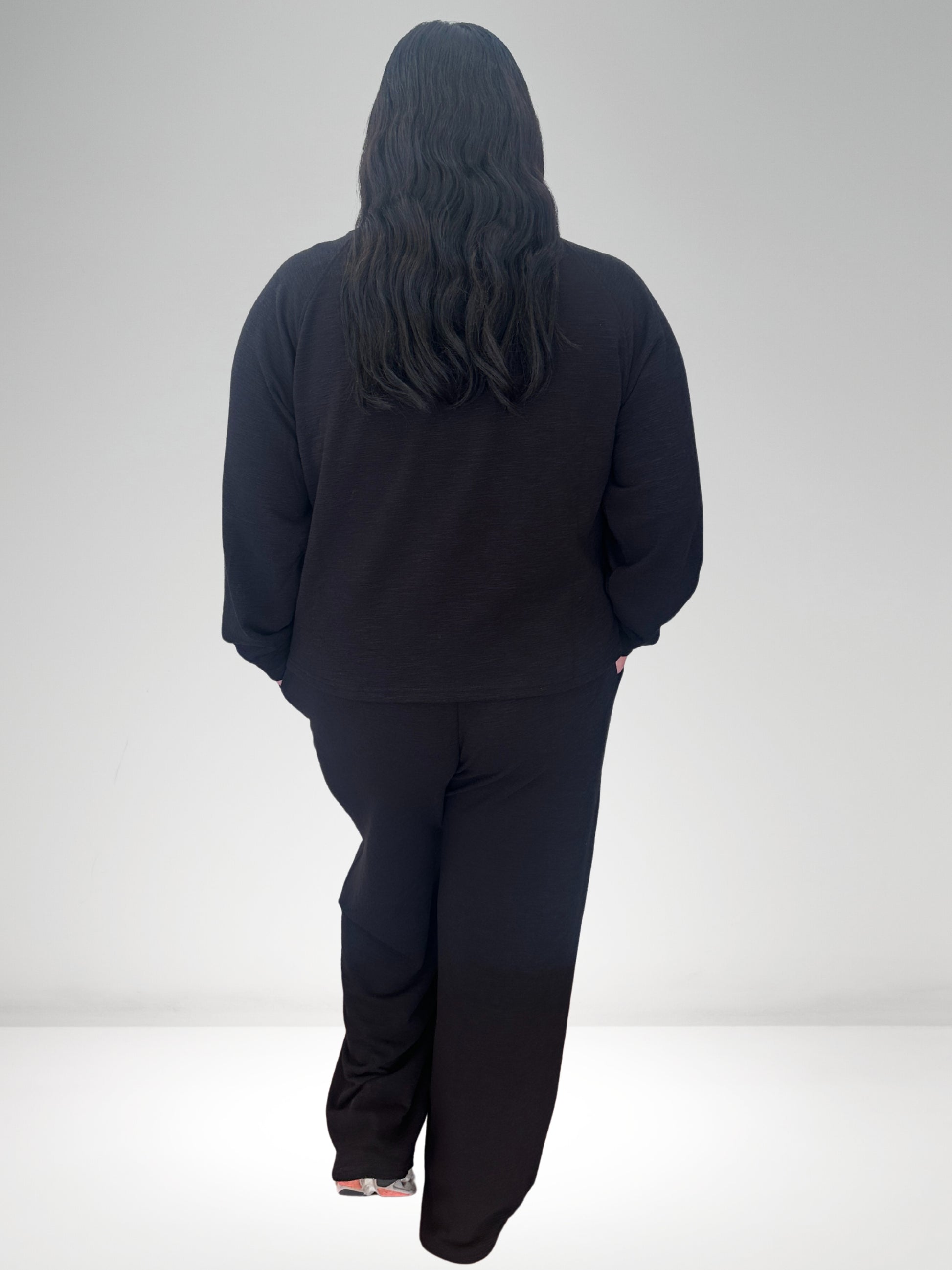Slip into the ultimate comfort duo with this black long sleeve top and pants set. Perfect for lounging, working from home, or casual outings, it offers cozy softness and a relaxed fit that moves with you. Whether you're binge-watching your favorite shows or stepping out for errands, this set keeps you comfy and effortlessly cool all day long.